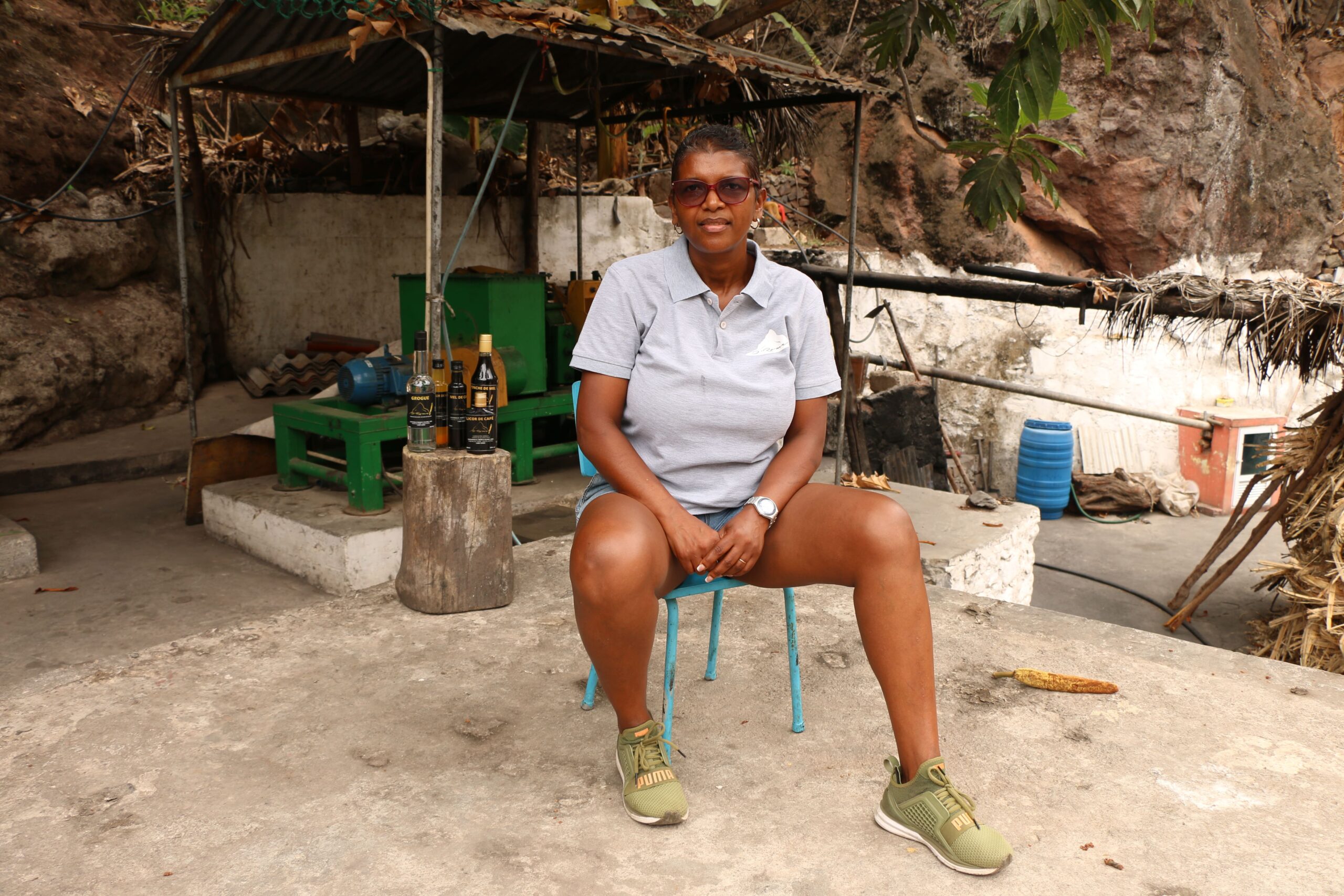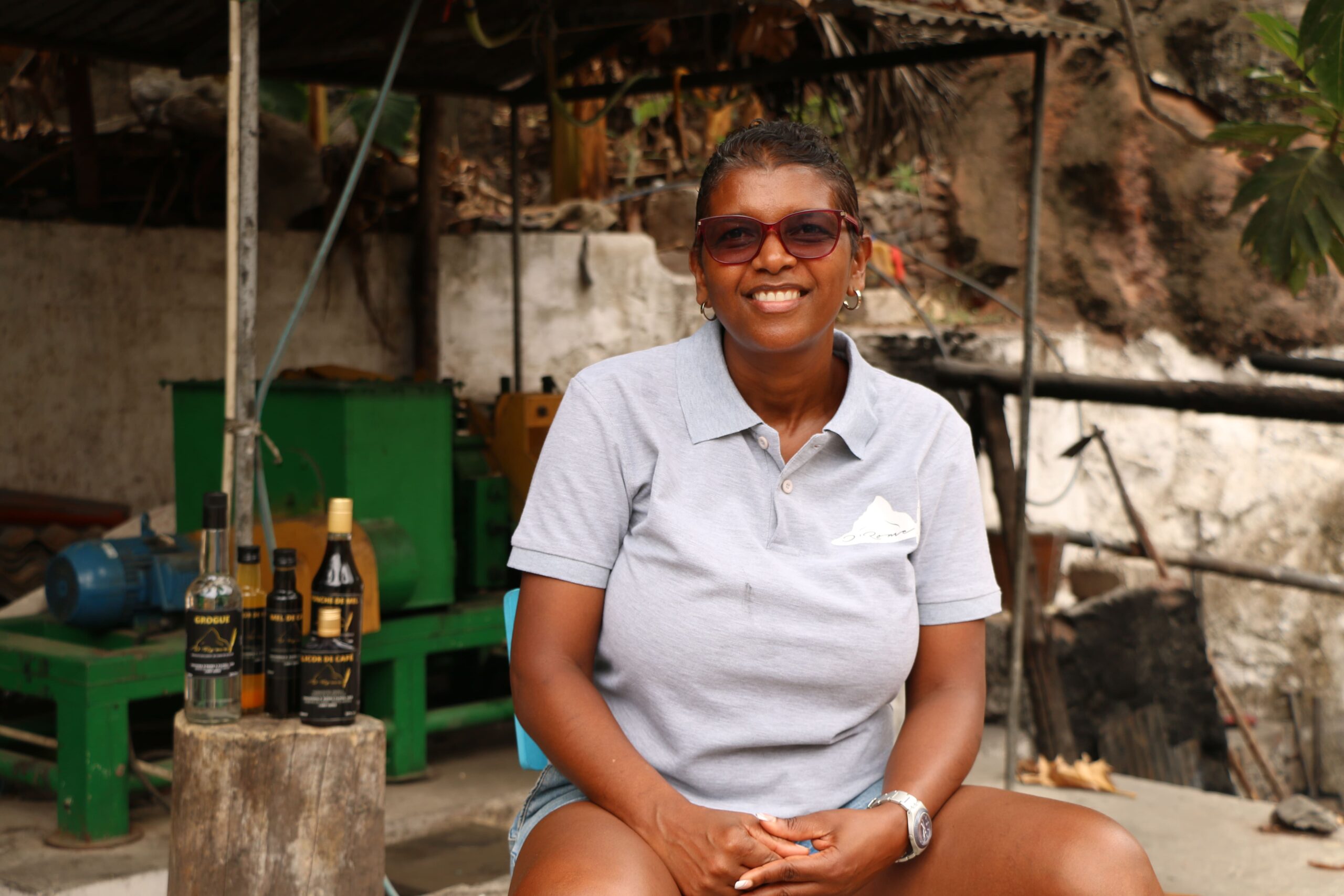 La marque D’Rome a vu le jour en 1987 à Ribeira da Torre, issue de l’agriculture de Santo Antão. L’agriculteur Jon D’Rome a fondé son distillat, où il s’est mis à produire du grogue et du miel de canne à sucre. La majeure partie de la canne provenait d’autres producteurs, qui payaient selon le modèle traditionnel encore en vigueur sur l’île : une bouteille de grogue sur deux appartient au propriétaire du distillat.À la tête de l’entreprise se trouve l’une des héritières, Joanita Fortes, professeure de philosophie qui a pris les rênes d’une activité traditionnellement dominée par les hommes. En plus d’être dirigée par une femme, D’Rome emploie également une main-d’œuvre majoritairement féminine. Sur les huit employés, permanents et temporaires, sept sont des femmes.