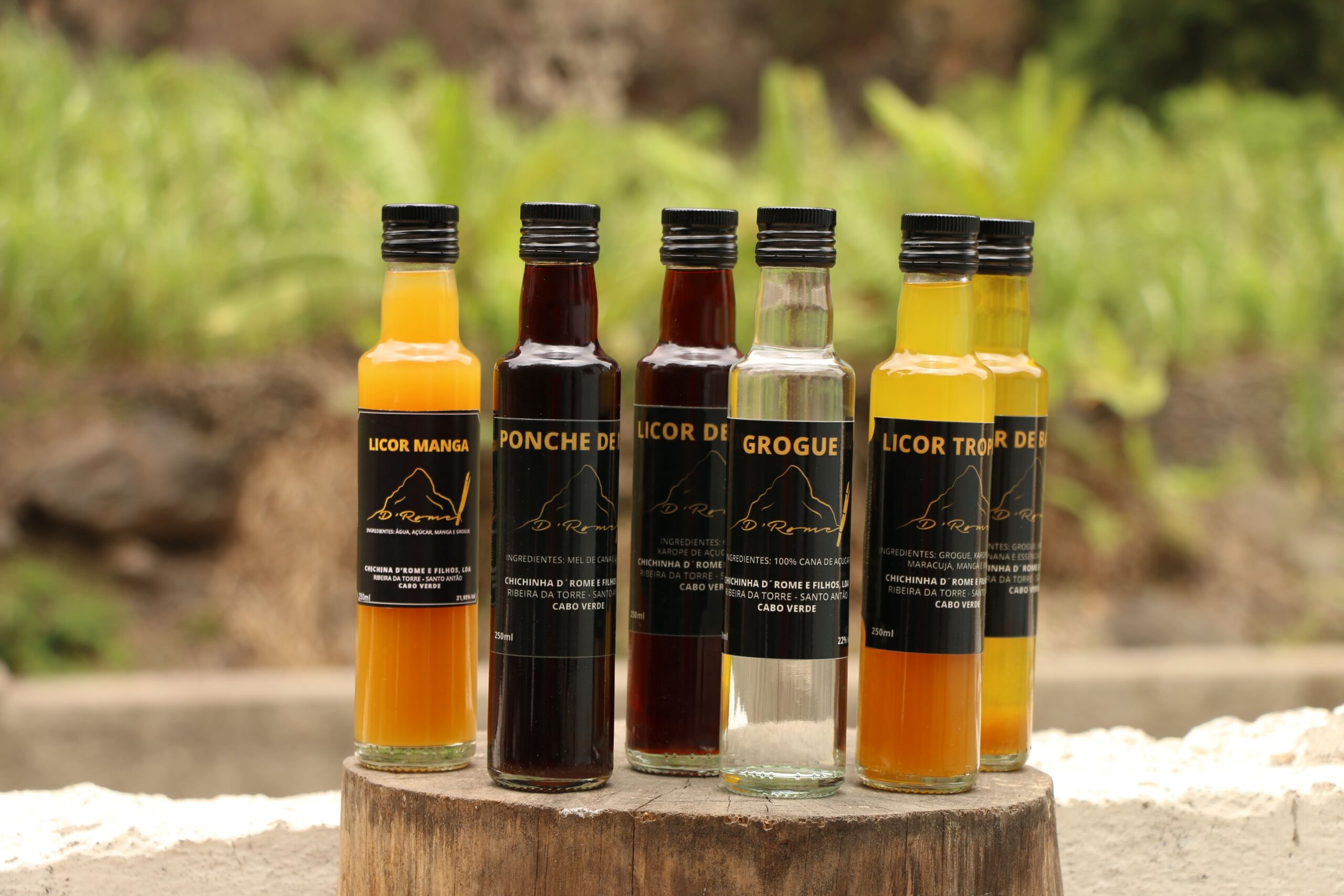 The D Rome brand was established in 1987 in Ribeira da Torre, having originated from the agricultural community of Santo Antão. The farmer Jon D’ Rome set up his own sugar mill, where he began producing grogue and sugarcane syrup. Most of the sugarcane came from other growers, who paid according to the traditional model still in use on the island – one in every two bottles of grogue belongs to the mill owner. Of the eight employees, both permanent and temporary, seven are women.